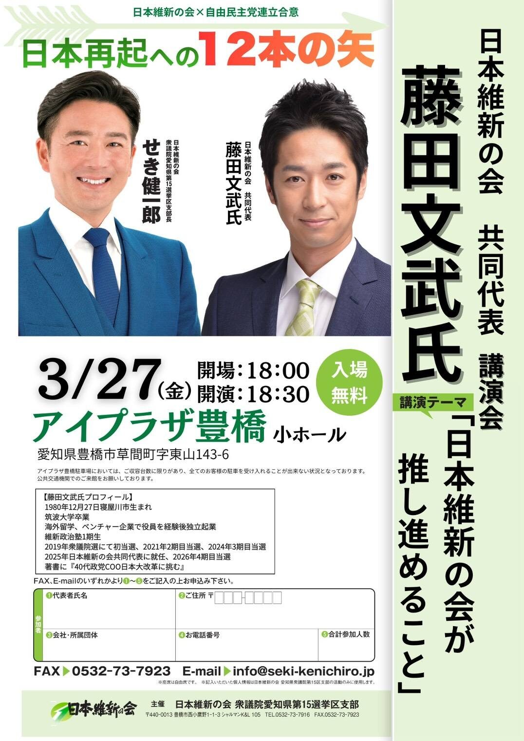 藤田文武代表が、豊橋へ!
